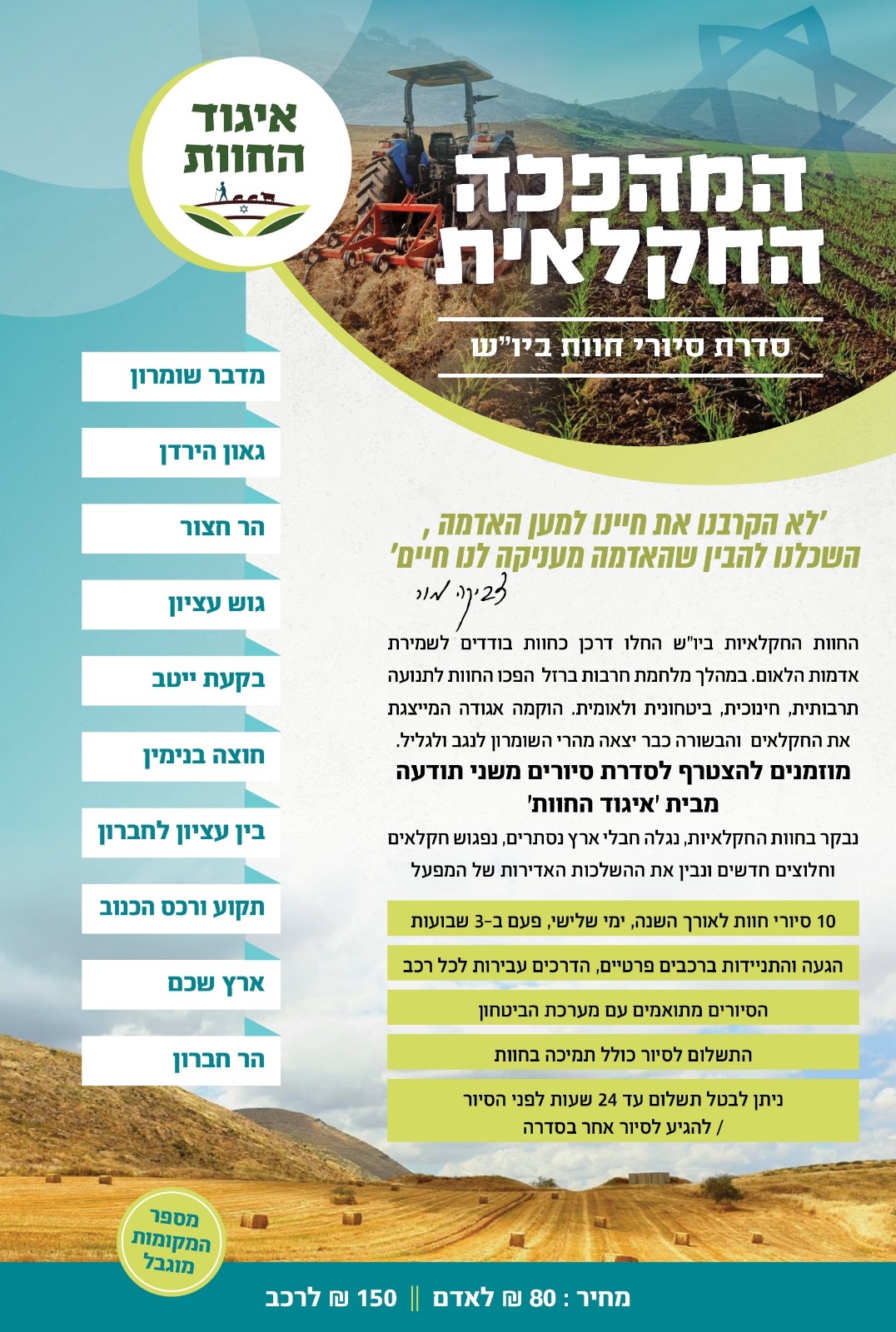 האיגוד יתמוך בחוות חקלאיות, שהן חוד החנית של השמירה על אדמות המדינה והבטחת הנוכחות הישראלית בשטחים אסטרטגיים שלה.